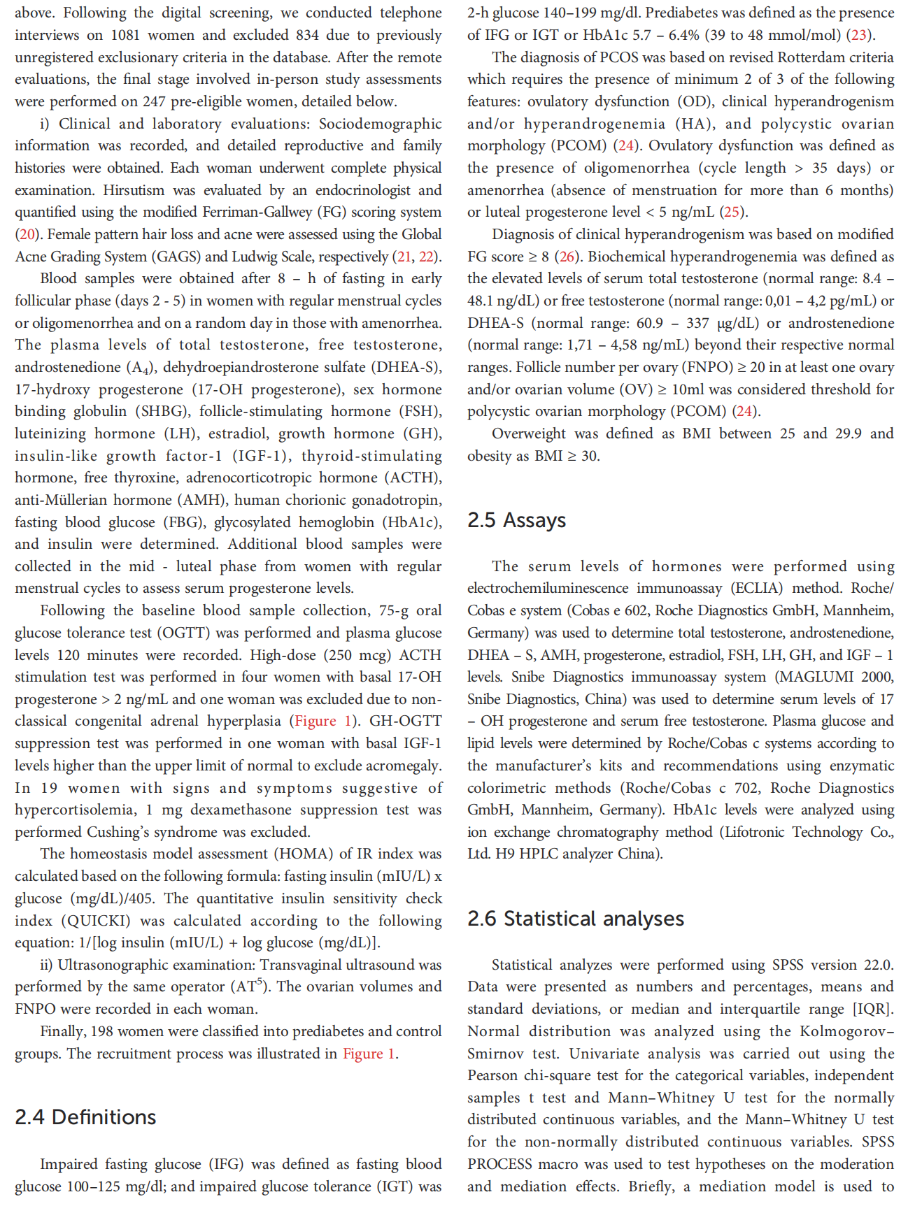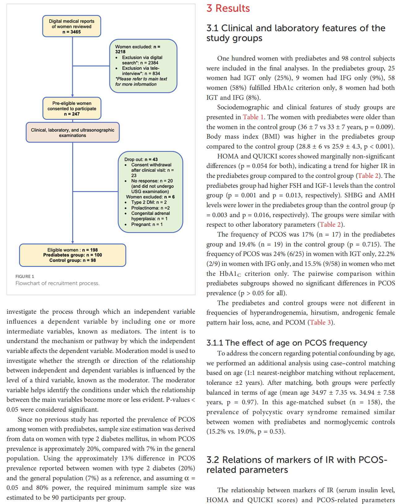 Methods: Of 3465 consecutive women applied between 2021 and 2023, 3218   women with diabetes mellitus or conditions affecting gonadal functions were excluded through digital screening and tele-interviews. Remaining 247 women underwent clinical assessments, excluding another 49 due to other endocrine diseases. The diagnosis of PCOS and prediabetes were based on Rotterdam and American Diabetes Association criteria, respectively.