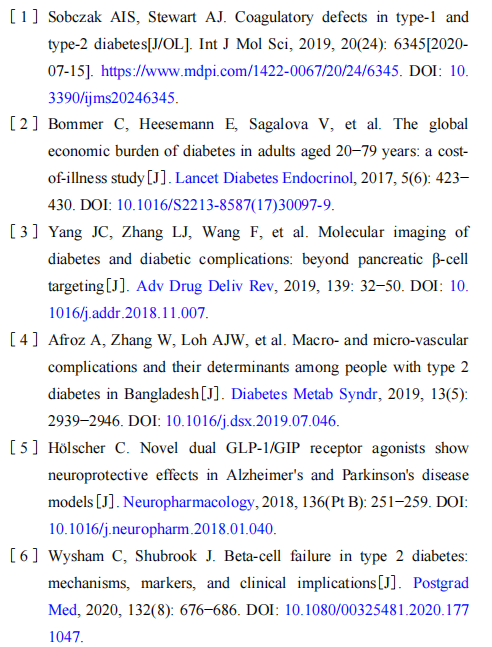 糖尿病患者可能发生许多并发症,其中最具破坏性的并发症是血管并发症。血管并发症分为微血管病变(小血管损伤)和大血管病变(动脉损伤),微血管病变包括视网膜病变、肾脏血管病变和神经病变,而大血管病变包括会导致心肌梗死的心血管疾病和以卒中为表现的脑血管疾病[4]。糖尿病还会增加阿尔茨海默病和帕金森病等慢性神经退行性疾病发病的风险[5]。