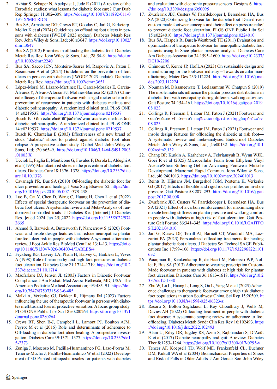 Diabetic foot ulcers (DFUs), one of the most severe com-plications of diabetes mellitus (DM), are associated with a high degree of morbidity and mortality, as well as substan-tially higher healthcare costs if not treated properly and in a timely manner [1, 2]. The areas of the plantar foot sub-jected to high peak pressure and repetitive stress, especially with peripheral neuropathy, are more likely to develop new or recurrent DFUs [1]. Offloading of at-risk foot regions is thus an essential part of DFU prevention and healing [3], and a longstanding preventive strategy recommended by clinicians to prevent ulceration in people with DM at risk of DFUs [4].