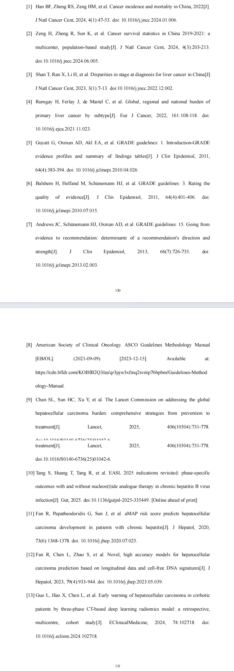 为推进我国肝癌诊疗规范化进程,原卫生部于 2011 年 10月首次发布《原发性肝癌诊疗规范(2011 年版)》。随着医学实践与科研进步,国家卫生健康委在 2017 年、2019 年、2021年及 2023 年完成四轮系统性修订,形成《原发性肝癌诊疗指南(2024 年版)》。该指南不仅系统整合了我国肝癌多学科诊疗(multi-disciplinary team,MDT)经验与科研成果,更为规范临床实践、优化医疗资源配置、提升患者生存质量提供了权威指导。自《原发性肝癌诊疗指南(2024 年版)》发布以来,全球在肝癌的诊断、分期及治疗方面出现了许多符合循证医学原则的高级别证据,尤其是适应中国国情的研究成果相继问世。为此,国家卫生健康委委托中华医学会肿瘤学分会,联合中国抗癌协会肝癌专业委员会、中国医师协会介入医师分会、中国医师协会外科医师分会和中华医学会超声医学分会等组织全国肝癌领域的多学科专家,结合肝癌临床诊治和研究的最新实践,再次修订并更新形成《原发性肝癌诊疗指南(2026年版)》(以下简称《指南》),以更好地规范肝癌的诊疗行为,反映肝癌诊治的最新进展,提升肝癌患者的总体生存(overallsurvival,OS)率,进一步推动落实并达成《“健康中国 2030”规划纲要》中实现总体癌症 5 年 OS 率提高 15%的目标。