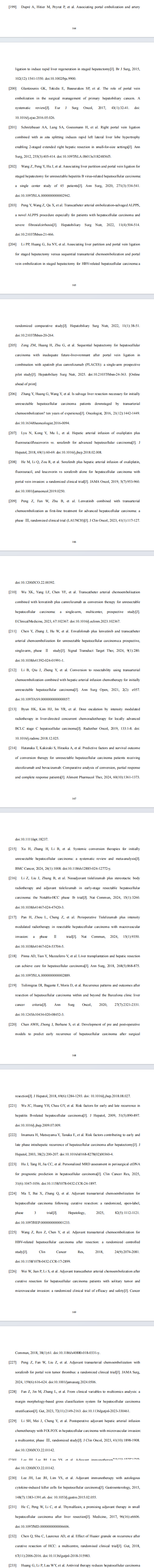 目前,多项 ICIs 单药/双免疫联合抗血管生成靶向药物(如多纳非尼联合 ICI s[458])、ICIs 联合含奥沙利铂的系统化疗以及双ICIs联合抗血管生成药物和含奥沙利铂的系统化疗(如Ⅱ/Ⅲ期DUBHE-H-308研究[459],Ⅱ期阶段结果显示ORR40%、DCR 90%、mPFS 13.1 个月、12 个月 OS 率 73.3%,Ⅲ期阶段正在进行)等研究,均在一线治疗不可切除的肝癌研究和实践中,已经显示出良好的有效性和安全性。有关的大型临床研究正在进一步积极推进,其结果有望为肝癌一线治疗提供更多的、更好的方案以及充分的循证医学证据,值得期待。
