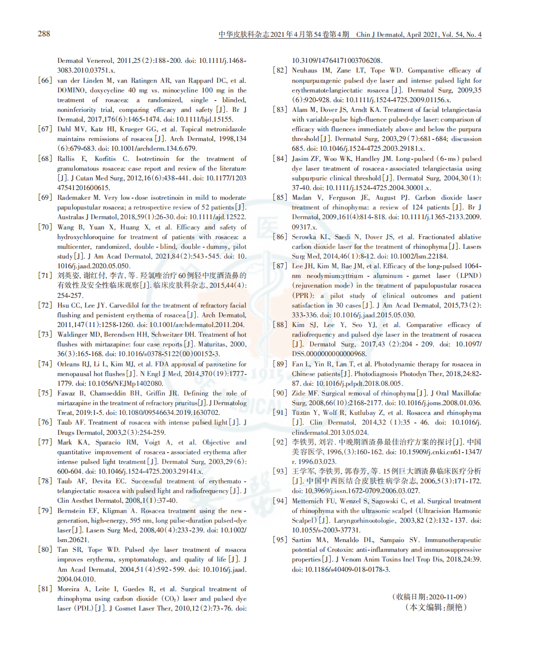 本文转载于中华皮肤科杂志2021年4月第54卷第4期,不代表本网站赞同其观点和对其真实性负责,我们只作于阅读分享,非商业用途,如若侵权,请告知删除。