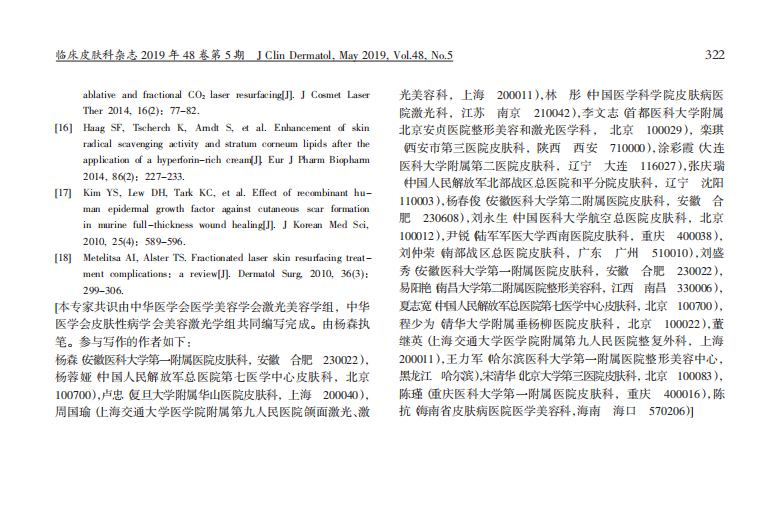 [关键词] 皮肤黏膜修复,光声电治疗术后;共识