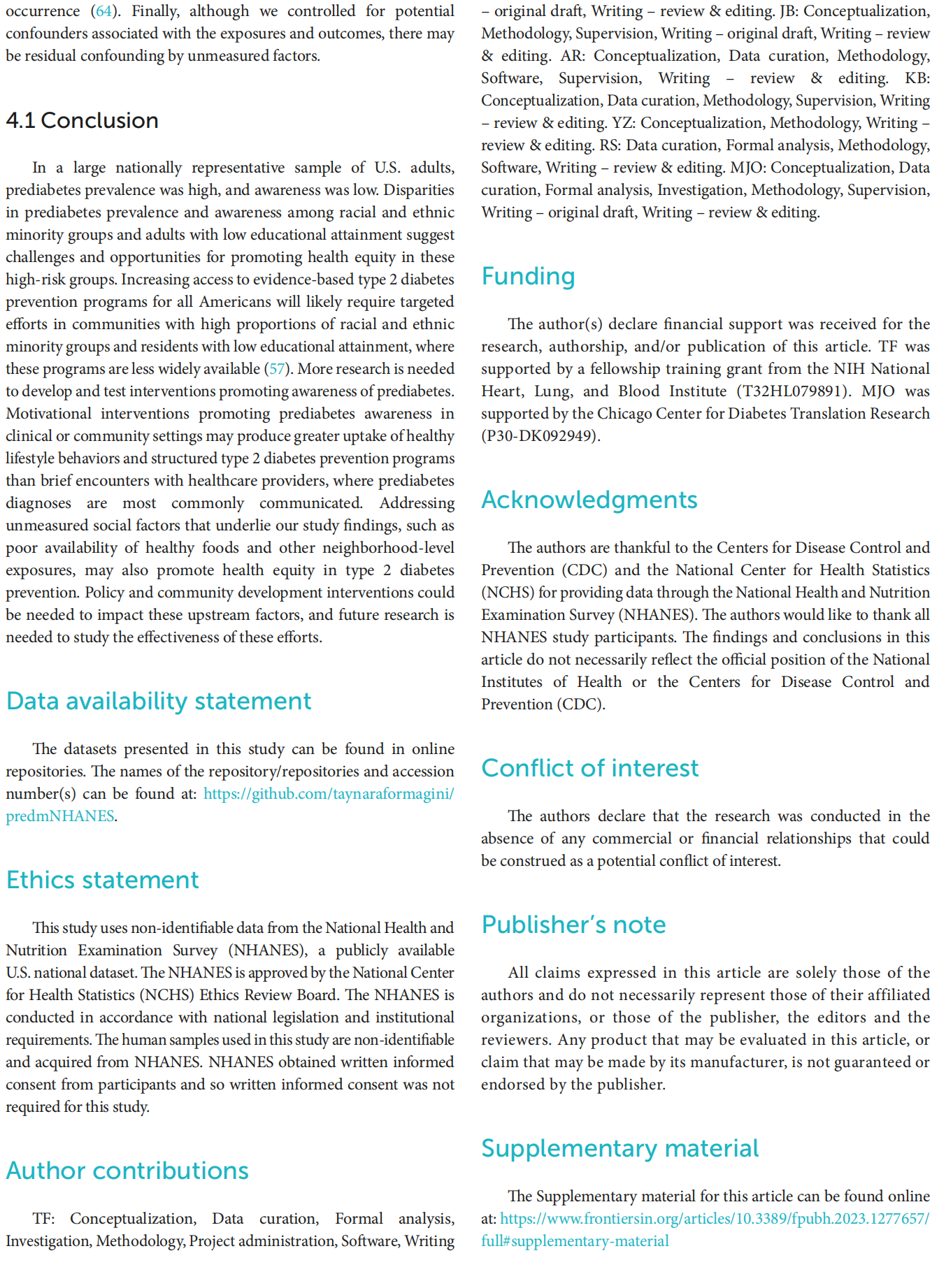 Taynara Formagini1,2 *, Joanna Veazey Brooks2,3,4 , Andrew Roberts2,5 , Kai McKeever Bullard6 , Yan Zhang6 , Ryan Saelee6 and Matthew James O'Brien7