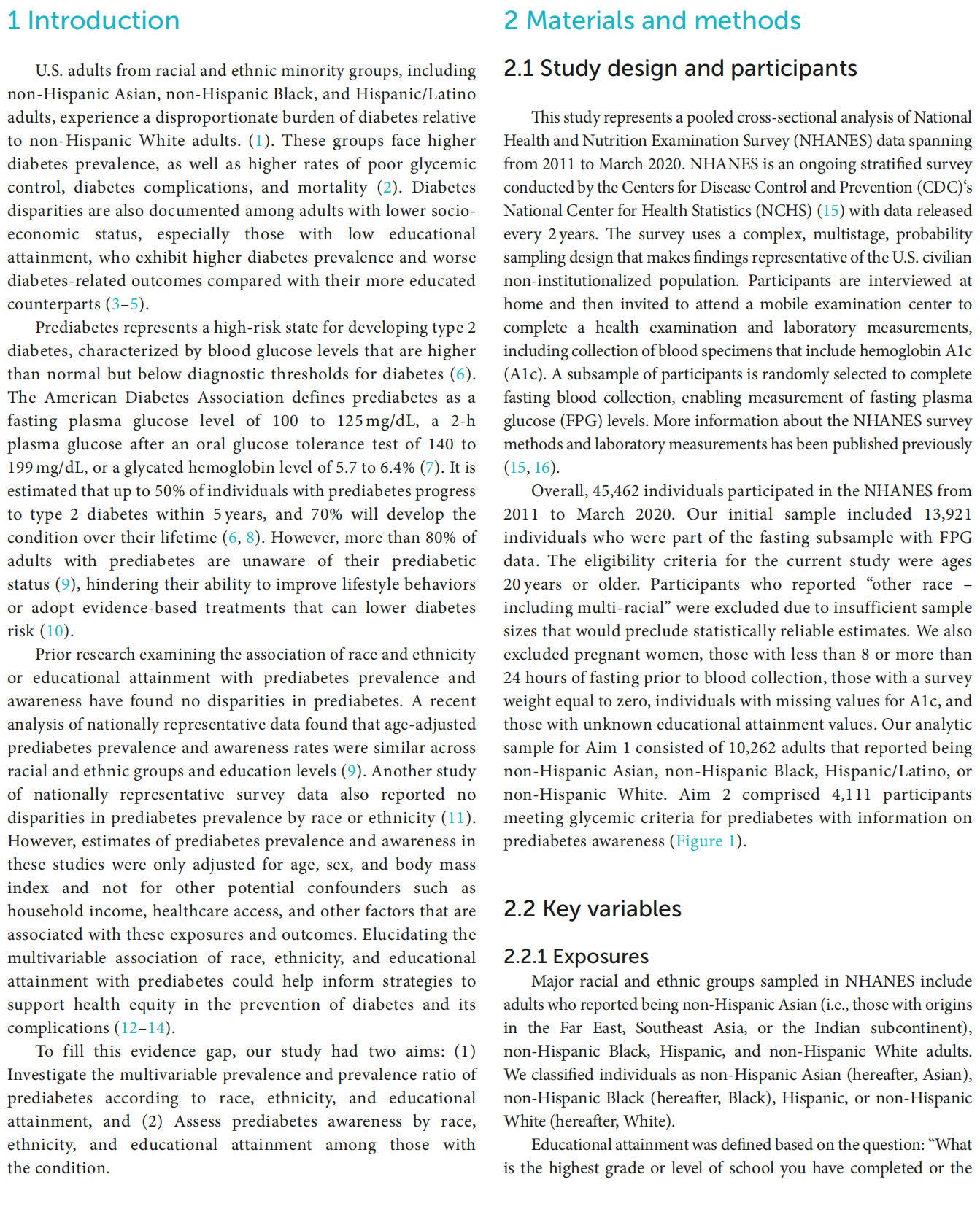 prediabetes, prediabetes awareness, diabetes-related disparities, race and ethnicity, educational attainment